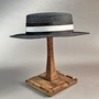 麻製のブレード素材の幅広のブリム(ツバ部分)のカンカン帽となります。